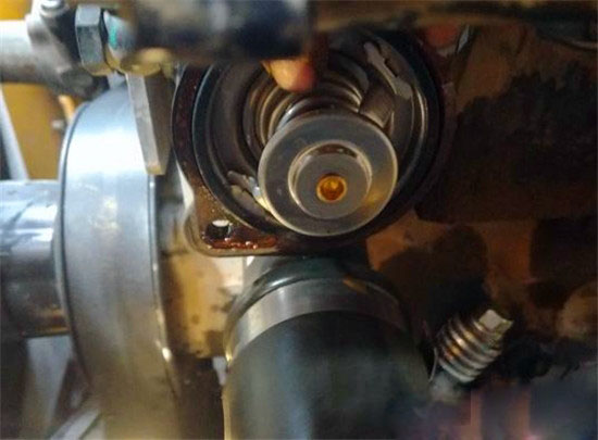 ★ 7、拆檢節(jié)溫器,放入熱水中觀察節(jié)溫器打開情況。若不能正常打開,則更換節(jié)溫器。