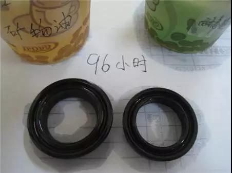96小時(shí)后,橡膠件膨脹20%,足以導(dǎo)致整機(jī)制動(dòng)效果失效。