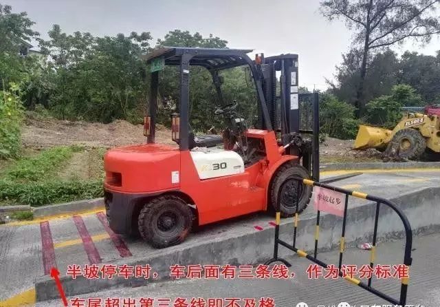半坡起步:車上右手邊有一紅色箭頭,半坡停車時,車上箭頭要對準(zhǔn)場地邊上的指定區(qū)域(紅線標(biāo)注的);稍作停頓即可,起步時,左腳放離合要慢,右腳同步加大油門,注意同步操作,便于起步。