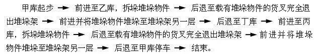 (作業(yè)要點:加油提升,倒車貨叉要后傾要提升,丁庫放叉)