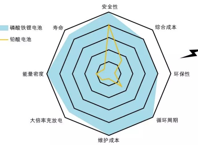 ▲磷酸鐵鋰電池與鉛酸電池優(yōu)勢比較