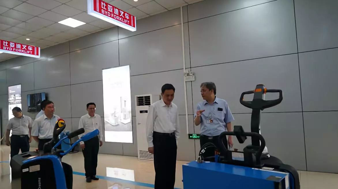 首先,在畢國忠總經(jīng)理的陪同下,李書記一行參觀了韶關展廳和叉車生產(chǎn)車間。畢總向李書記介紹了韶關比亞迪的發(fā)展概況,并詳細匯報了比亞迪全系列新能源叉車的應用領域及市場拓展局面。