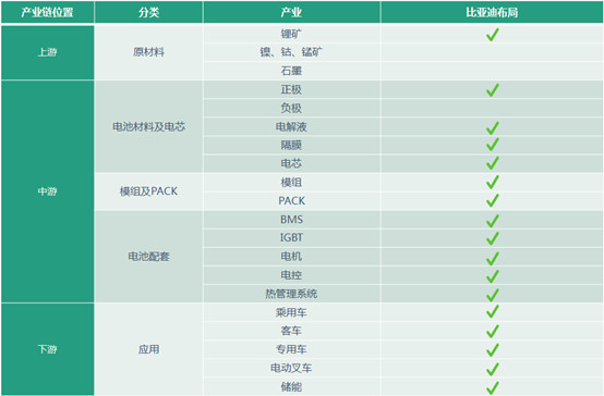 比亞迪不僅生產(chǎn)廣布出行和搬運領(lǐng)域的新能源終端產(chǎn)品,還掌握著一條幾乎全覆蓋的上、中、下游新能源產(chǎn)業(yè)鏈,并且通過在產(chǎn)業(yè)鏈縱深方向的高度整合,將大部分的產(chǎn)業(yè)鏈環(huán)節(jié)、核心技術(shù)掌控在自己手中。