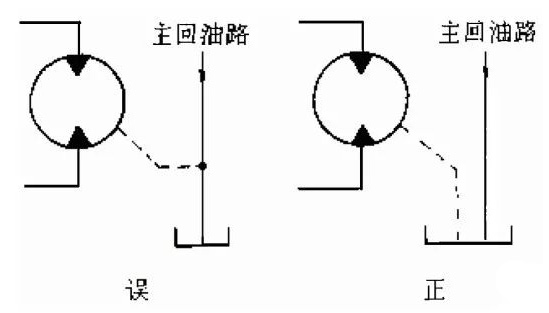 外接的泄漏油應(yīng)能保證馬達的殼體內(nèi)充滿油,防止停機時殼體里的油全部流回油箱。
