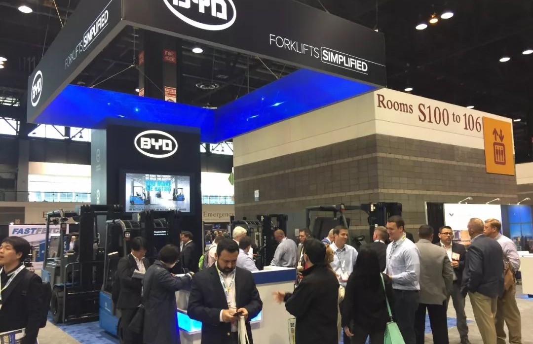 4月8-11日,2019年美國芝加哥國際物流展在芝加哥麥考密克會展中心舉行,比亞迪叉車攜旗下電動平衡重式叉車、電動托盤搬運(yùn)車等多款新能源產(chǎn)品亮相。