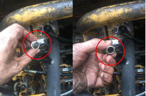 現(xiàn)場用戶試車對處理結(jié)果表示滿意,后與用戶交談中得知,該機(jī)用戶有一段時間加裝使用破碎錘,工作期間有一次破碎油管管被大石塊碰壞,用戶自行在外扣壓一根高壓油管裝上,當(dāng)詢問用戶是否有清理油管,用戶稱切管的用嘴吹了吹管兩頭,扣壓完拿回來直接裝上車。
