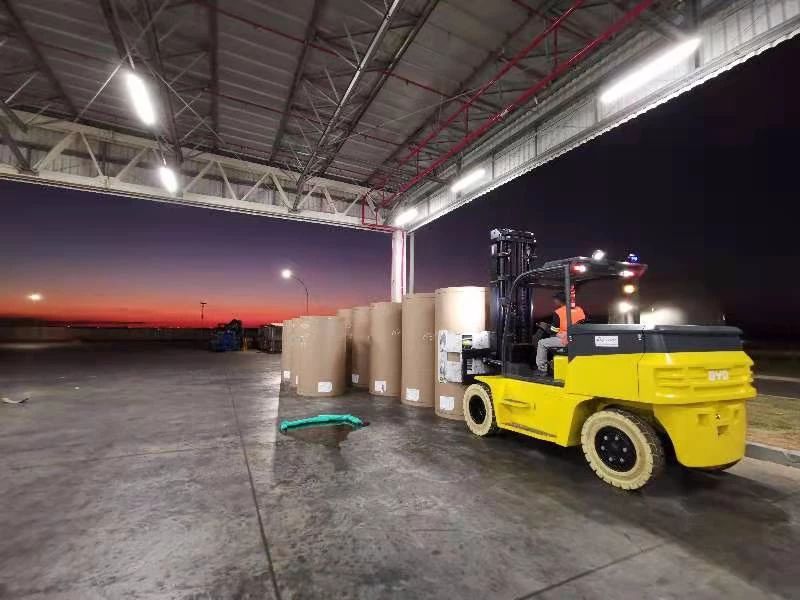 以巴西為例,比亞迪叉車與美國第二大包裝公司在巴西的工廠達成了合作。該公司是世界最大的紙張和包裝公司之一,也是美國最大公司的財富500強企業(yè),在30個國家都擁有生產(chǎn)業(yè)務。目前在巴西主營的是牛皮紙和包裝盒行業(yè),生產(chǎn)量大,對此,比亞迪叉車為其量身定制了大噸位平衡重式叉車ECB70。今年,該紙廠再次訂購了4臺ECB70。