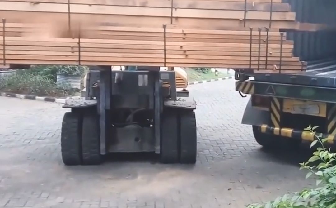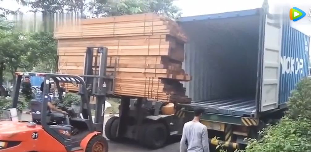 兩個(gè)叉車合作,行云流水