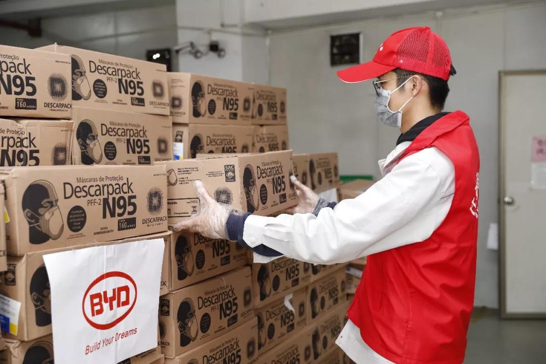 2月13日,比亞迪首批海外援贈醫(yī)療物資N95口罩順利交付醫(yī)院一線