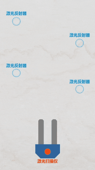 搬運(yùn)機(jī)器人通過(guò)激光掃描儀持續(xù)向外發(fā)射激光束,同時(shí)采集由反射器反射的激光束,