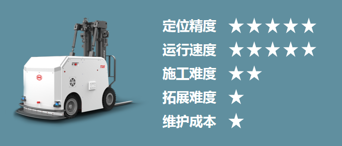 定位精確;運(yùn)行速度快;無(wú)需在地面鋪設(shè)其它定位設(shè)置,施工方便;行駛路徑靈活多變,拓展路徑容易;維護(hù)方便,維護(hù)成本低等優(yōu)勢(shì),適用于有多個(gè)目的地的復(fù)雜路線系統(tǒng)。