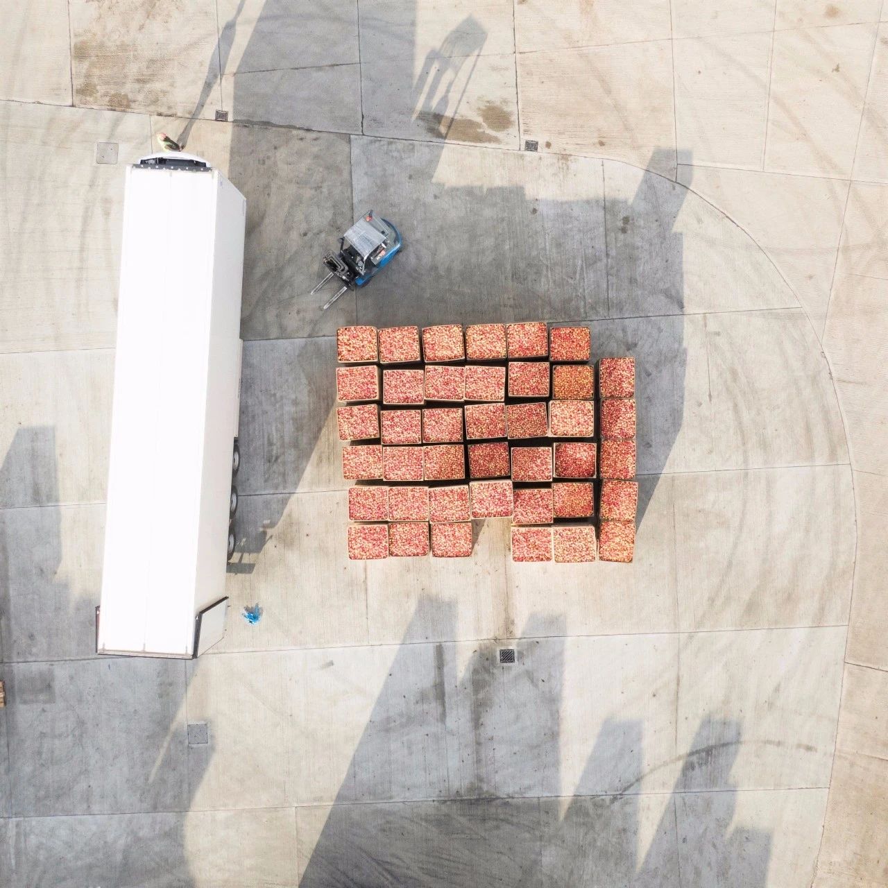 Cottage Farms使用比亞迪CPD20四輪平衡重式叉車(chē)在戶外裝卸蘋(píng)果箱