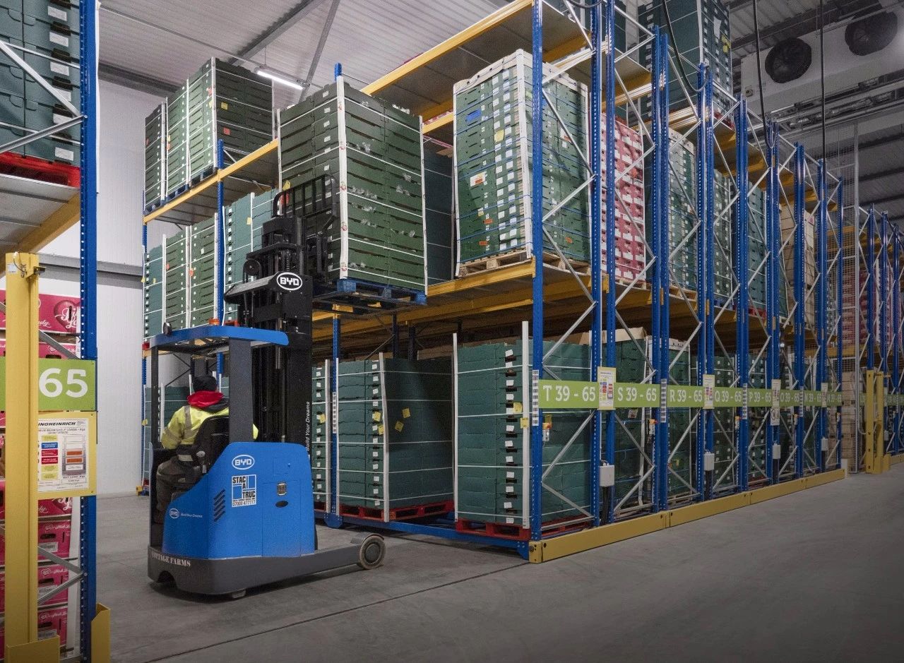 將比亞迪前移式叉車(chē)引入倉(cāng)庫(kù)后,Cottage Farms每托盤(pán)的儲(chǔ)存和發(fā)運(yùn)成本下降了近35%