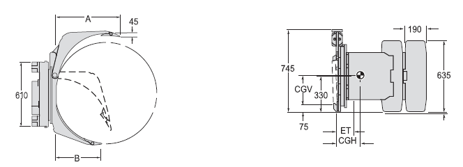 | Capacity 承載能力(kg) | Catalog Order NO 型號(hào) | Mounting Class 安裝等級(jí) | Range紙卷直徑(mm) | Type類(lèi)型 | Long Arm Length長(zhǎng)臂長(zhǎng)A(mm) | Short Arm Length短臂長(zhǎng)A(mm) | Vertcial Center Of Gravity垂直重心CGV(mm) | Mounting Angle安裝角度 | Weight 自重(kg) | Effective 失載距ET(mm) | Horizontal Center of Gravity 水平重心CGH(mm) |