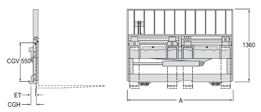 | Capacity 承載能力(kg) | Catalog Order NO 型號(hào) | Mounting Class 安裝等級(jí) | Opening Range貨叉調(diào)距范圍ITO(mm) | Minimum Truck Carriage Width叉車(chē)貨叉架寬度最小值(mm) | Overall Width總寬A(mm) | Fock Pocket Width適配貨叉寬度(mm) | Weight 自重(kg) | Effective 失載距ET(mm) | Horizontal Center of Gravity 水平重心CGH(mm) |