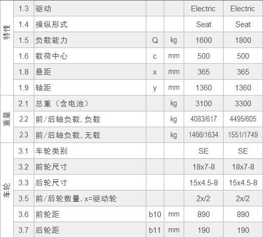 2、CPD16S/18S三支點平衡重叉車技術(shù)參數(shù)一覽表: